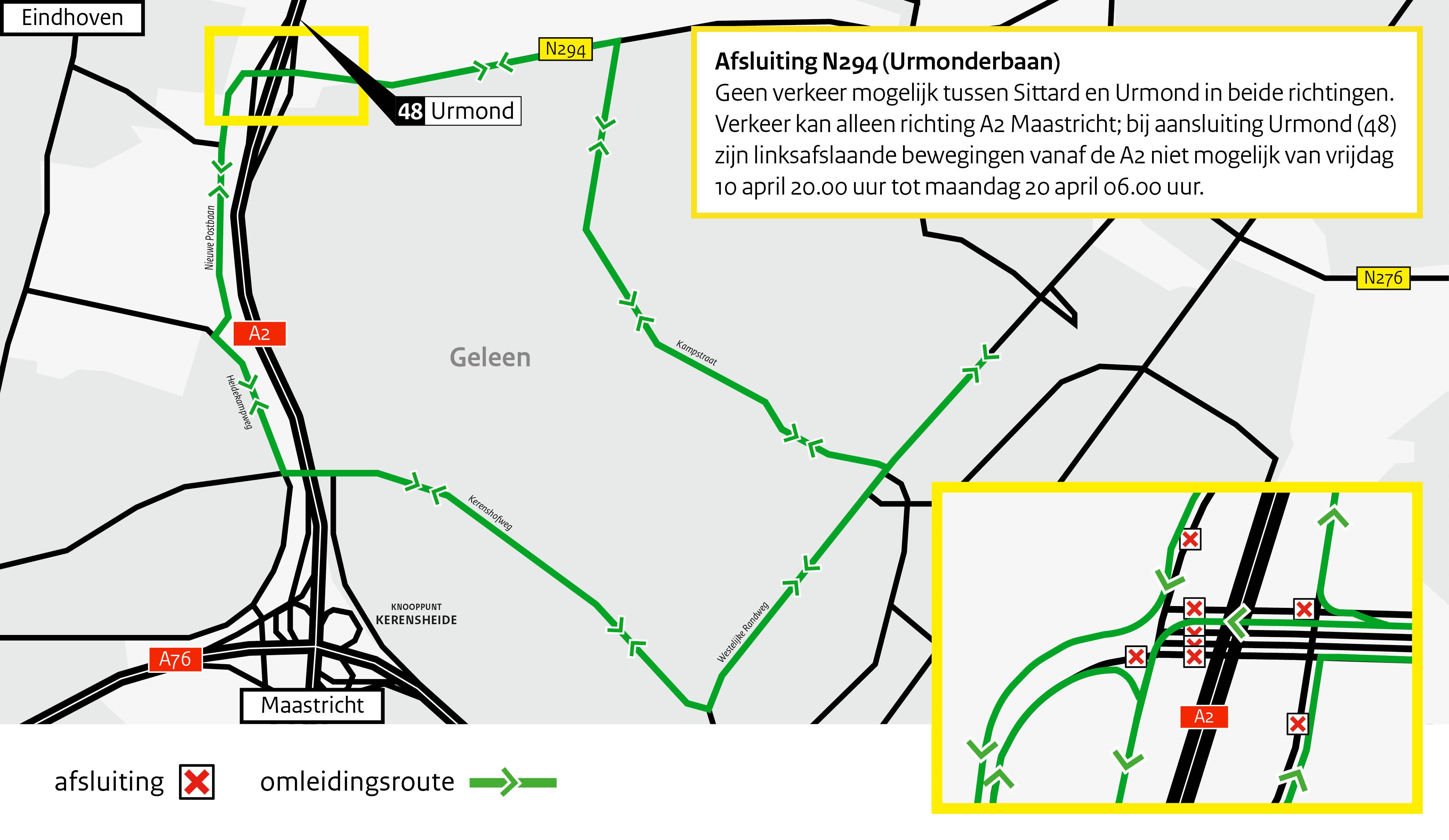 - Doorgaand verkeer tussen Urmond en Sittard kan dan geen gebruik maken van de N294.