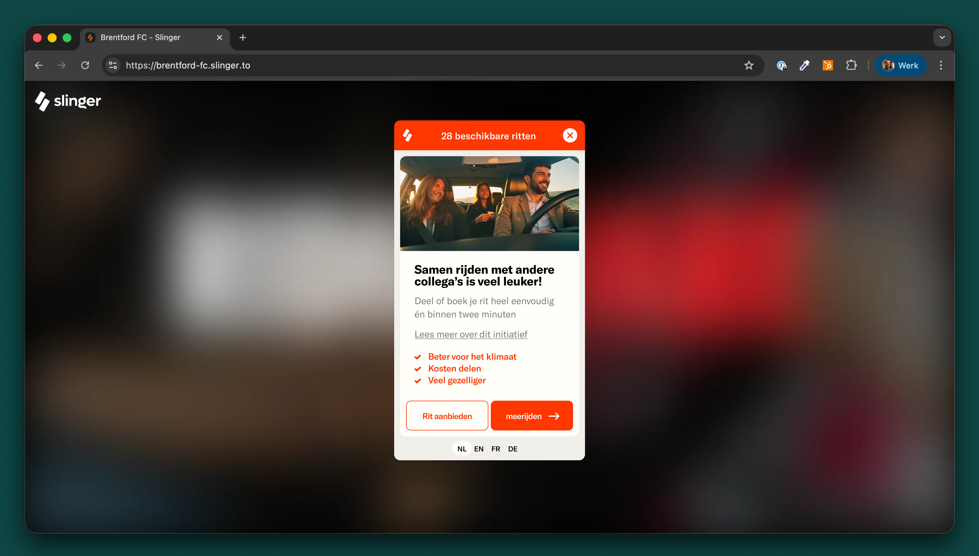 - 1 jaar gratis gebruik Slinger carpoolplatform